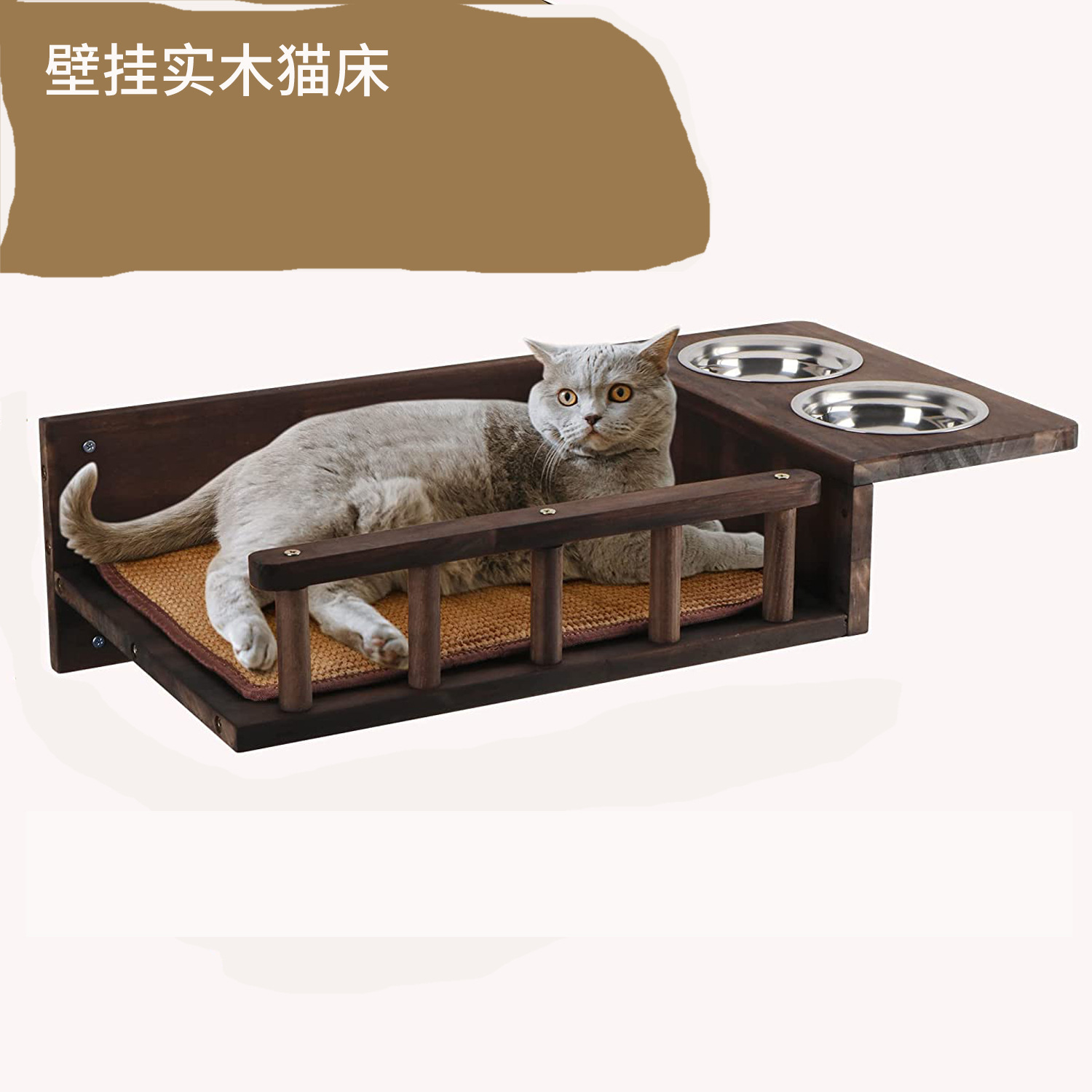 屋内猫ラック壁掛け式木製猫給餌ラック壁猫ボウル猫遊びジャンプ台生息地猫ラックベッド