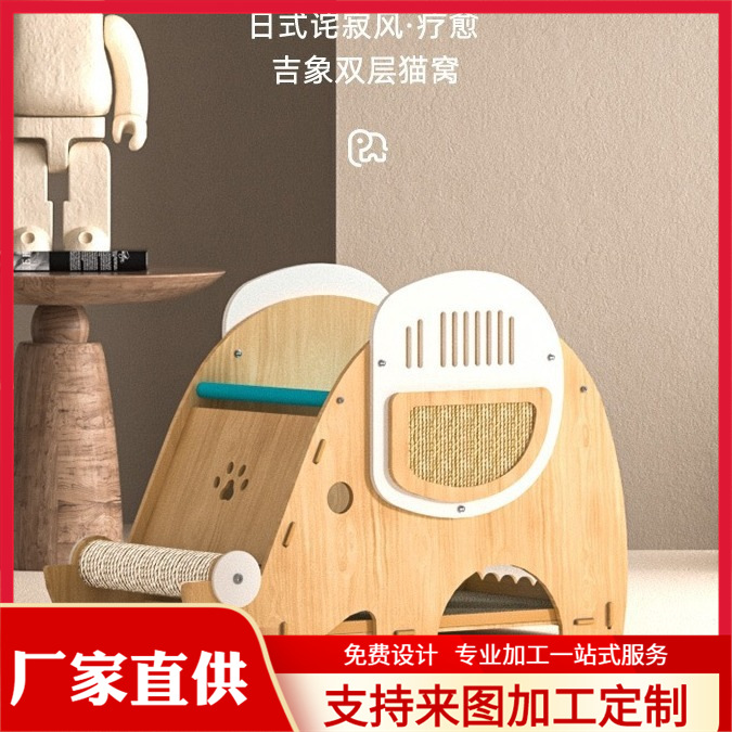 木造の猫の棚の猫の巣の猫のつかみ板の一体の多機能は爪の創意のかわいい象のペットの用品のメーカーをつぶします