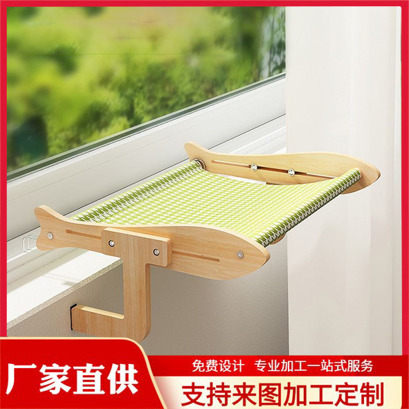 無垢材猫吊りベッドバルコニー窓猫ハンモックベッドサイドベルクロ猫の巣猫ベッド耐荷重 15kg リビングルーム猫の巣