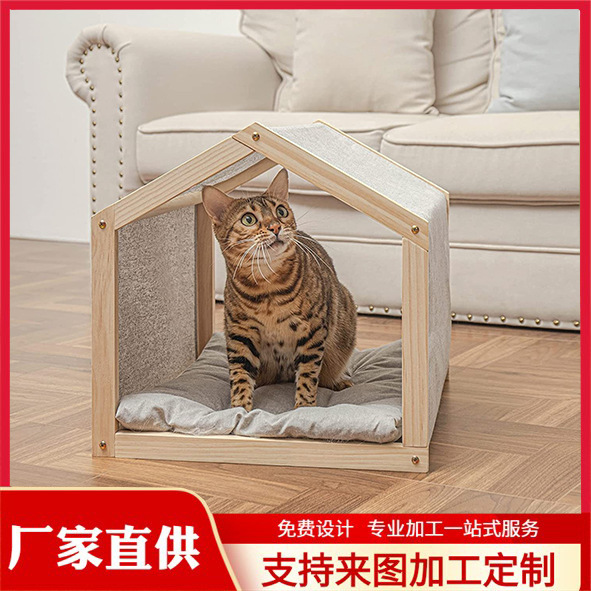 猫ベッド四季通用猫巣実木離地防湿防かび猫行軍ベッド子犬犬小屋ペット用品