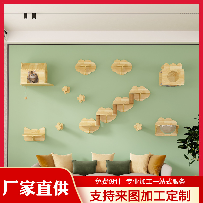 カスタマイズされた木の猫の棚の壁掛け式の猫の別荘の猫の跳台の壁式の宇宙室の猫の柱の猫のおもちゃ