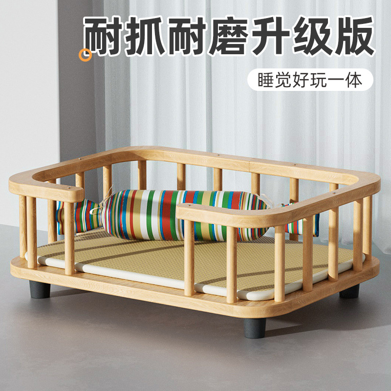 無垢材の猫ベッド、犬小屋、キャンプベッド、地上フェンス、ペット猫ベッド、厚みのある取り外し可能で洗える大型犬小屋マット、犬ソファ