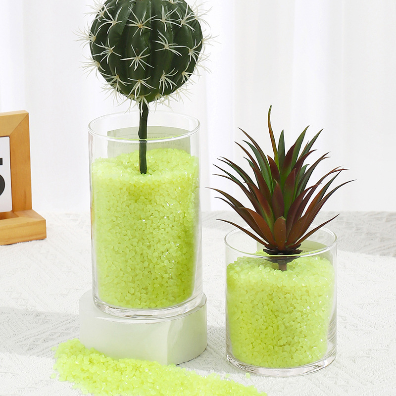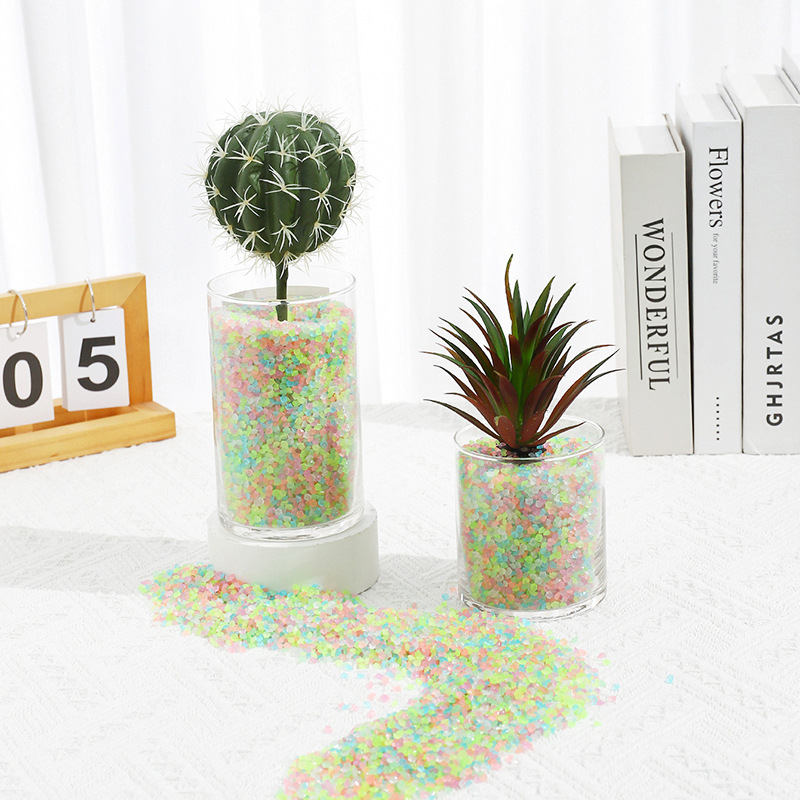 メーカー卸売りカラー夜光砂3-5mm超明るい人工プラスチック夜光砂許瓶顆粒砂卸売り