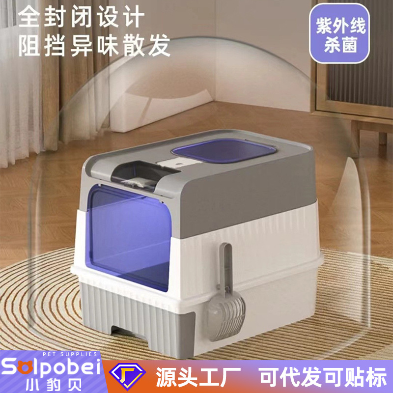 猫砂盆紫外線殺菌頂入特大号全閉鎖式猫砂盆ペット用品引き出し式猫トイレ