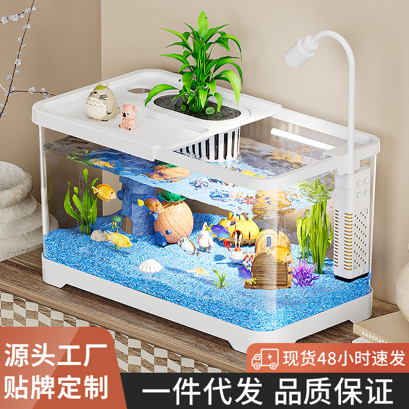 家庭用水族館リビングルームデスクトップ生態造園金魚水槽自己循環ストリームタンクオフィス高透過性ベタ水槽