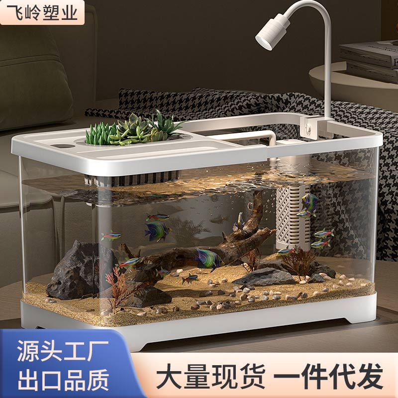 水槽リビングルーム 2025 新しい小さな金魚カメ飼育家庭用模造ガラスアクリル小型デスクトップ生態タンク