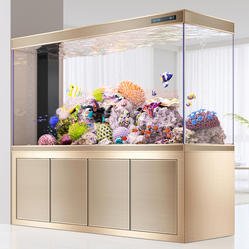 スマート金魚鉢客間大型床置き壁家庭用超白ガラス縦型角型生態底ろ過水槽