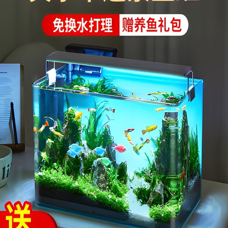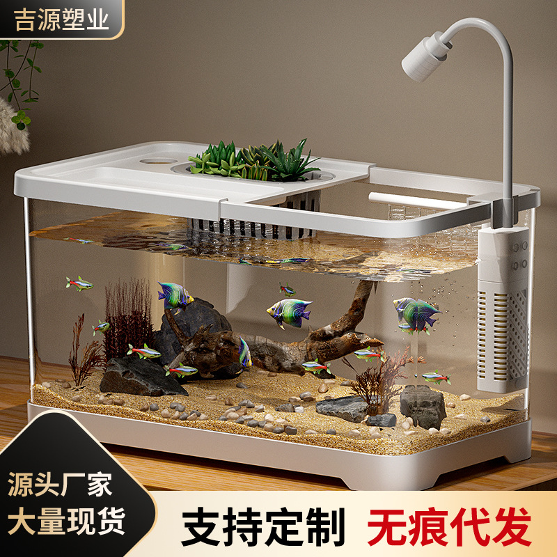 家庭用水族館リビングルーム生態造園ベタ水槽フィルター酸素発生オールインワンマシン高透明小型デスクトップ金魚水槽