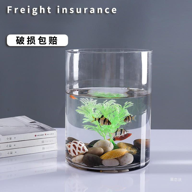 厚い大型ガラスストレート水槽円柱形透明金魚鉢オフィスデスクトップ家庭用小型円極凱