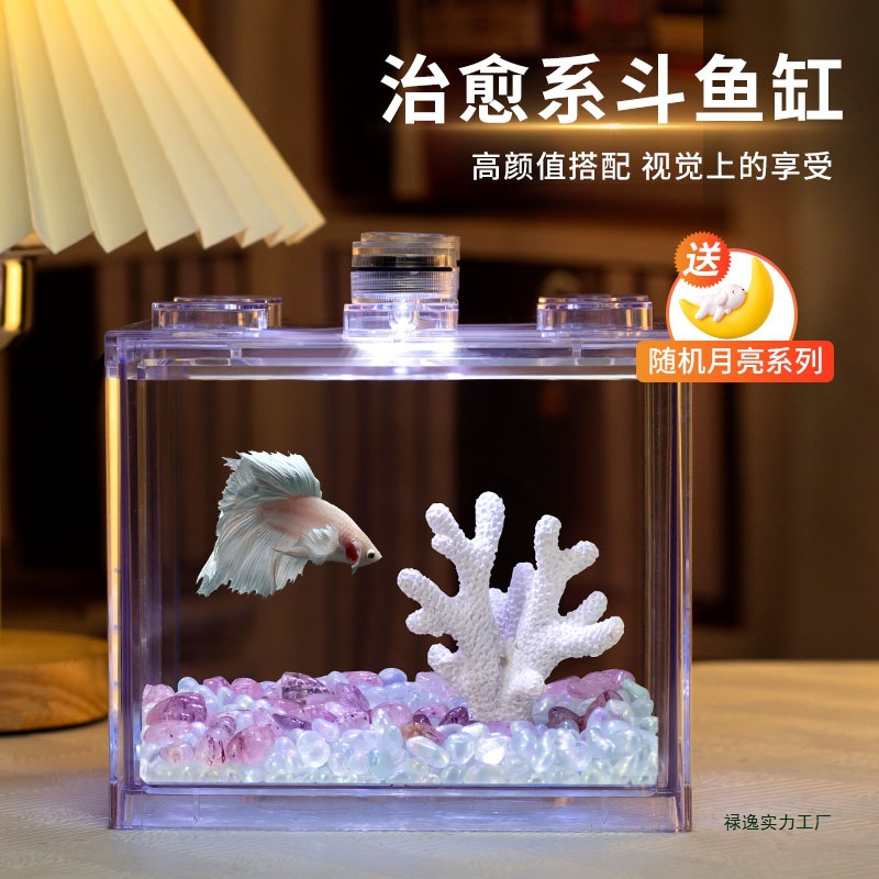 ベタ水槽アクリル小さなビルディングブロックホームリビングルームクリエイティブ造園生態ミニ高透明デスクトップ装飾品