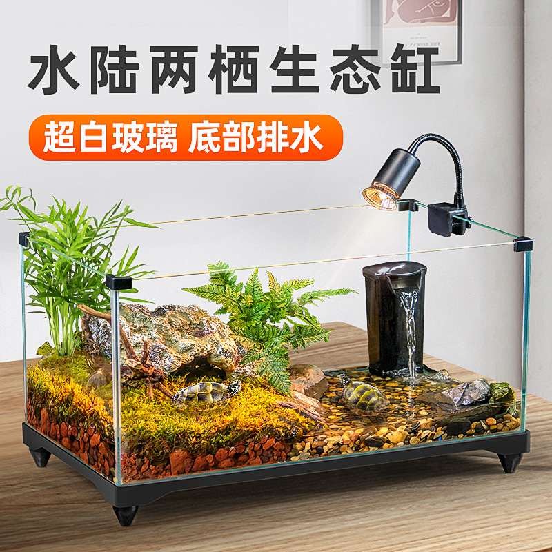 亀飼育タンク生態造景装飾家庭用蓋付き登台底部排水専用箱客間小型水槽