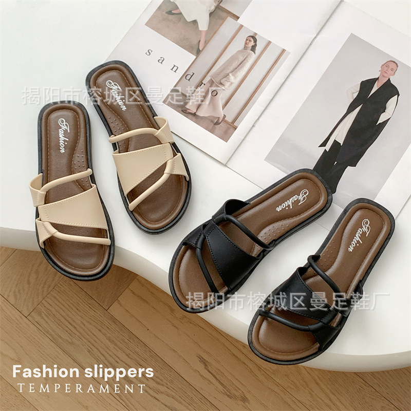 2025新型の外国貿易クロスボーダー35-42女性式夏の大きいサイズの外は一字の砂浜の柔らかい底の方の頭の冷たいスリッパを着ます。