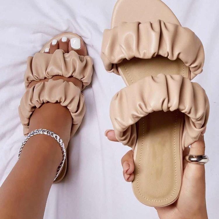 新しいフラットスリッパの女性の怠惰な靴は快適で、ビーチシューズを履いています。