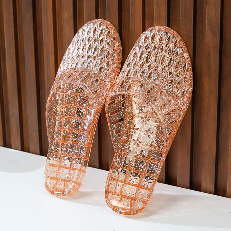 新しい夏の韓国風フラワークリスタルゼリーサンダル、ファッショナブルなフラット透明サンダル、滑り止めビーチサンダル