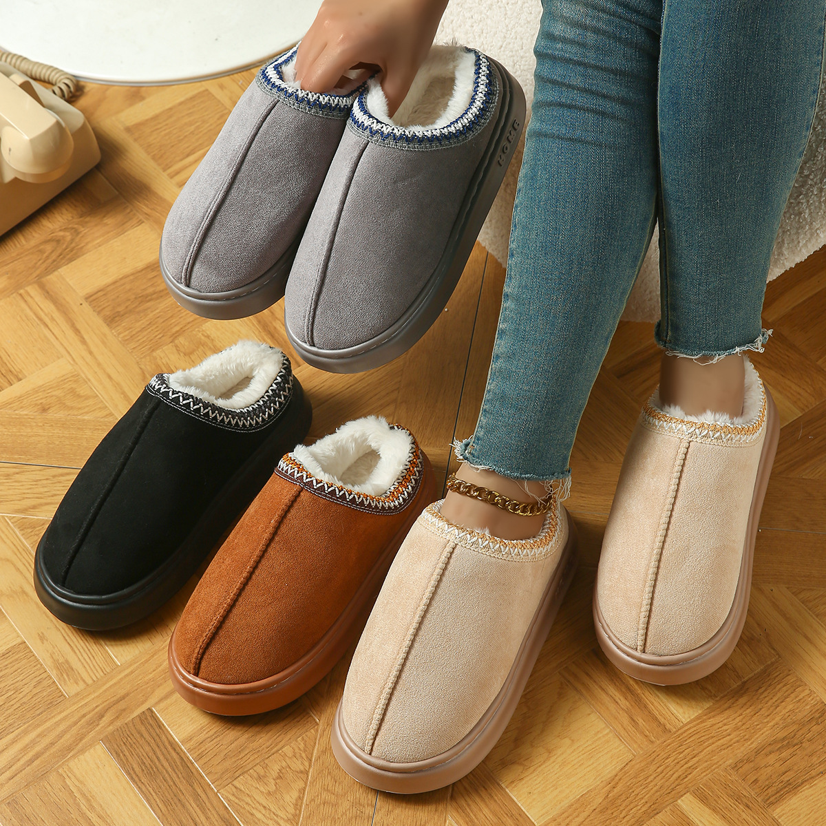 ネットの赤い毛のスリッパの女性は2023秋冬の新型の怠け者の足を履いて毛の靴の厚い底の包頭の綿のスリッパを踏んでいます。