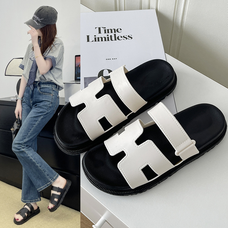 2025 新しい夏のインターネットセレブの女性用フラットスリッパ、ファッショナブルで多用途、滑り止め、軽量オープントゥビーチシューズ
