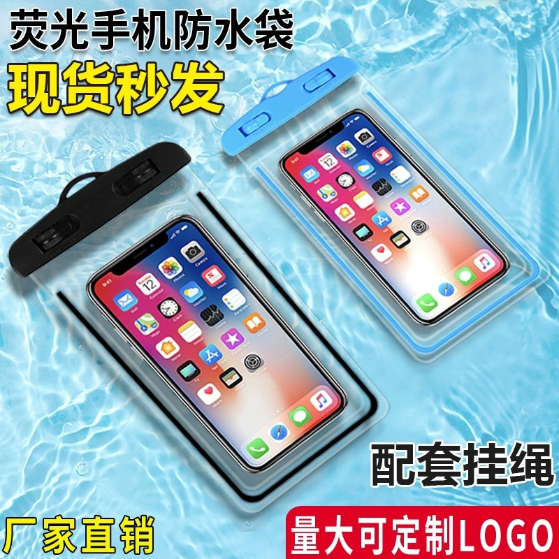 透明タッチスクリーン携帯電話カバー屋外温泉水泳ダイビング夜光防水カバーpvc蛍光携帯電話防水袋