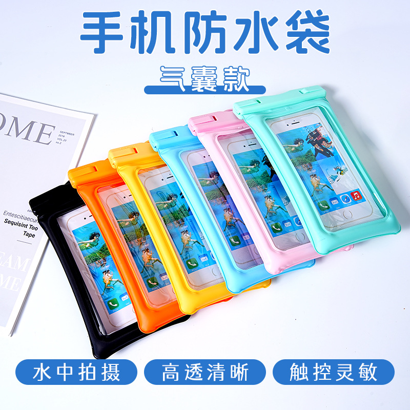 新型漫画エアバッグ携帯電話防水袋インフレータブル浮遊携帯電話袋タッチパネル電話大画面に水をかけることができる