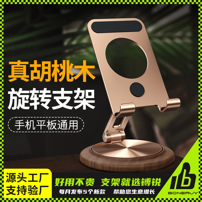 携帯電話スタンド卸売りアルミ合金と胡桃木折り畳み可能なプレゼント誕生日プレゼント回転デスクトップフラットスタンド