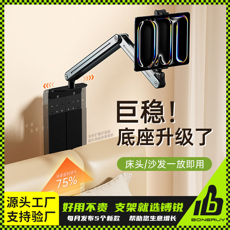 怠け者のベッドの上のアームの携帯電話のタブレットの支柱は穴を開けないでデスクトップの壁の生放送の支柱のアルミニウム合金の収納の支柱