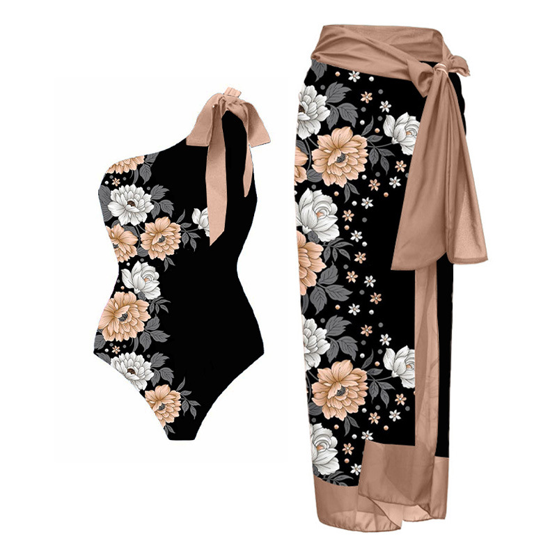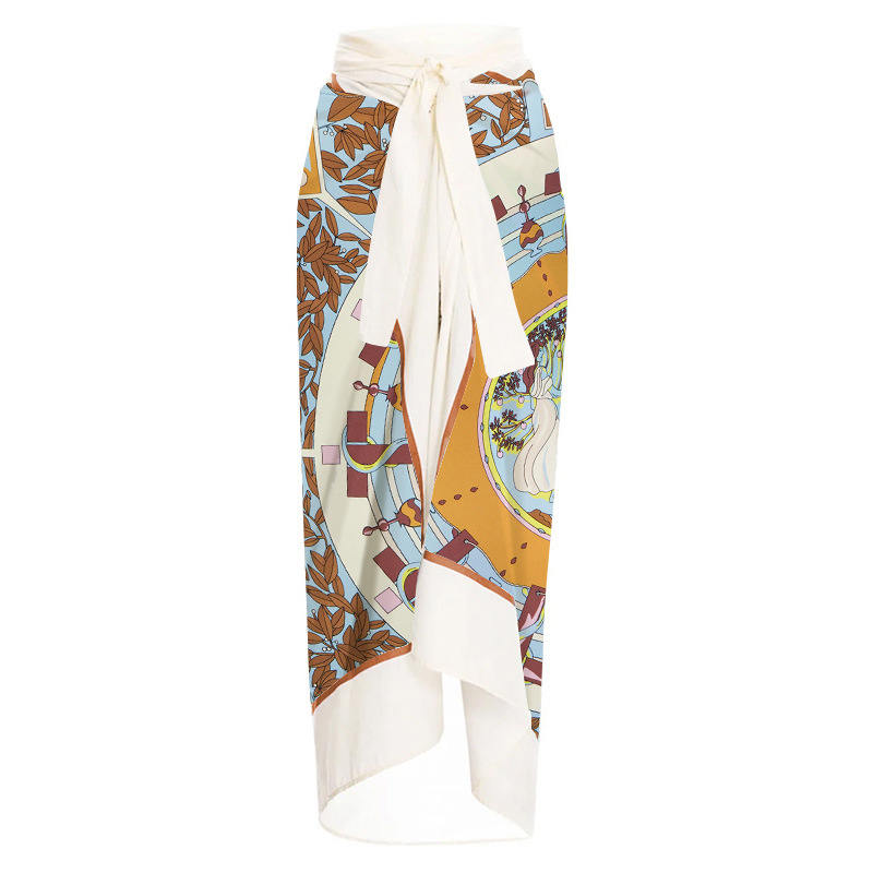 オリエンタルスタイルの水着セット、海辺のエレガントな選択肢、エレガントなパターンのプリントビーチハーフスカート、ヨーロッパとアメリカのクロスボーダー