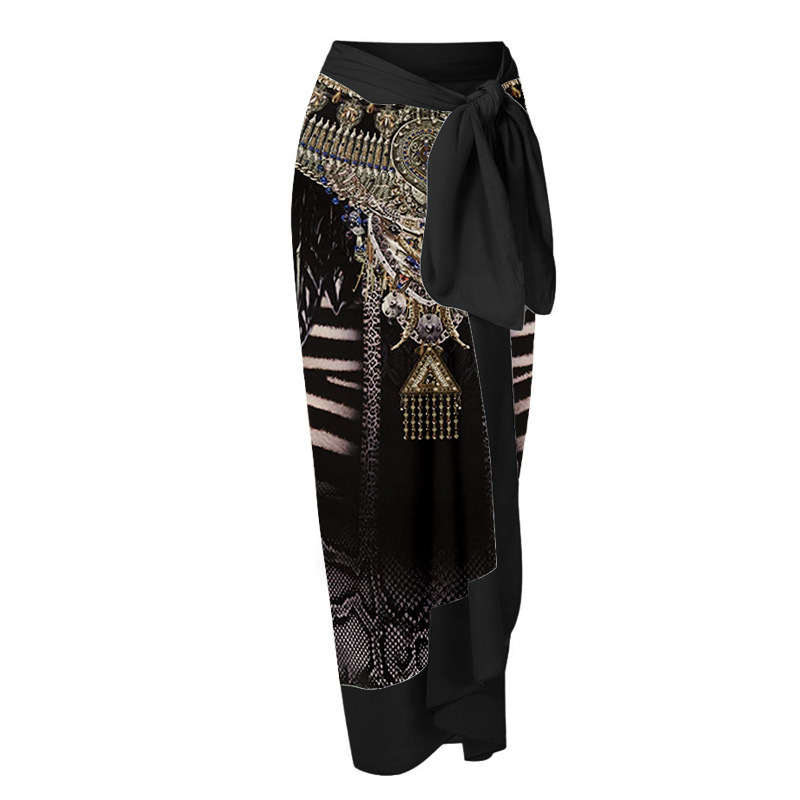 ヨーロッパとアメリカのダークナイトラグジュアリーシャドウゴージャストーテムプリントビキニハーフスカートシーサイドパーティーワンピースハーフスカート