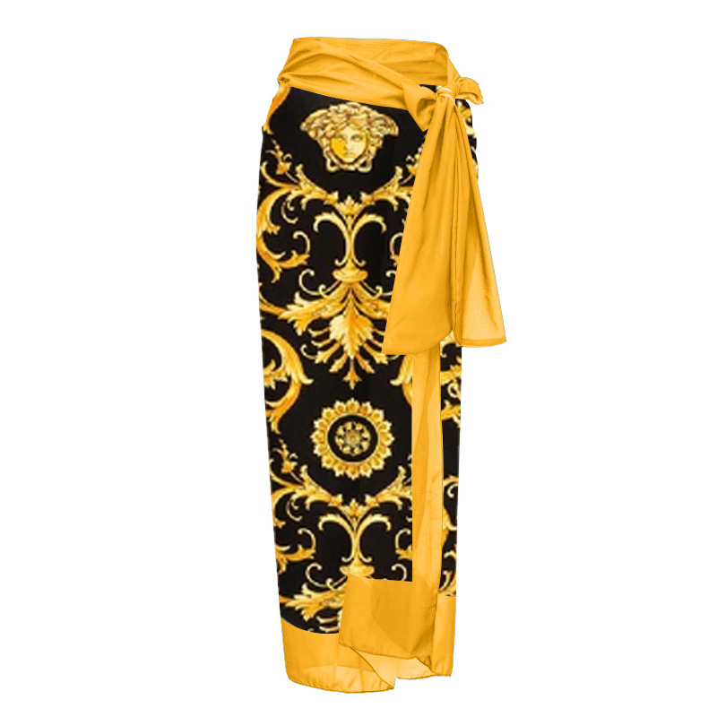 ヨーロッパとアメリカの AliExpress Amazon ブラックゴールド高級バロックスタイルラップスカートレトロプリントビーチスカート女性用