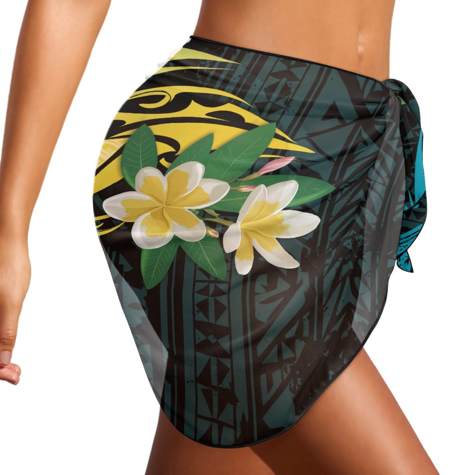 クロスボーダー新作水着カバーアップポリネシアプルメリア柄レースアップビーチスカートビキニラップスカート