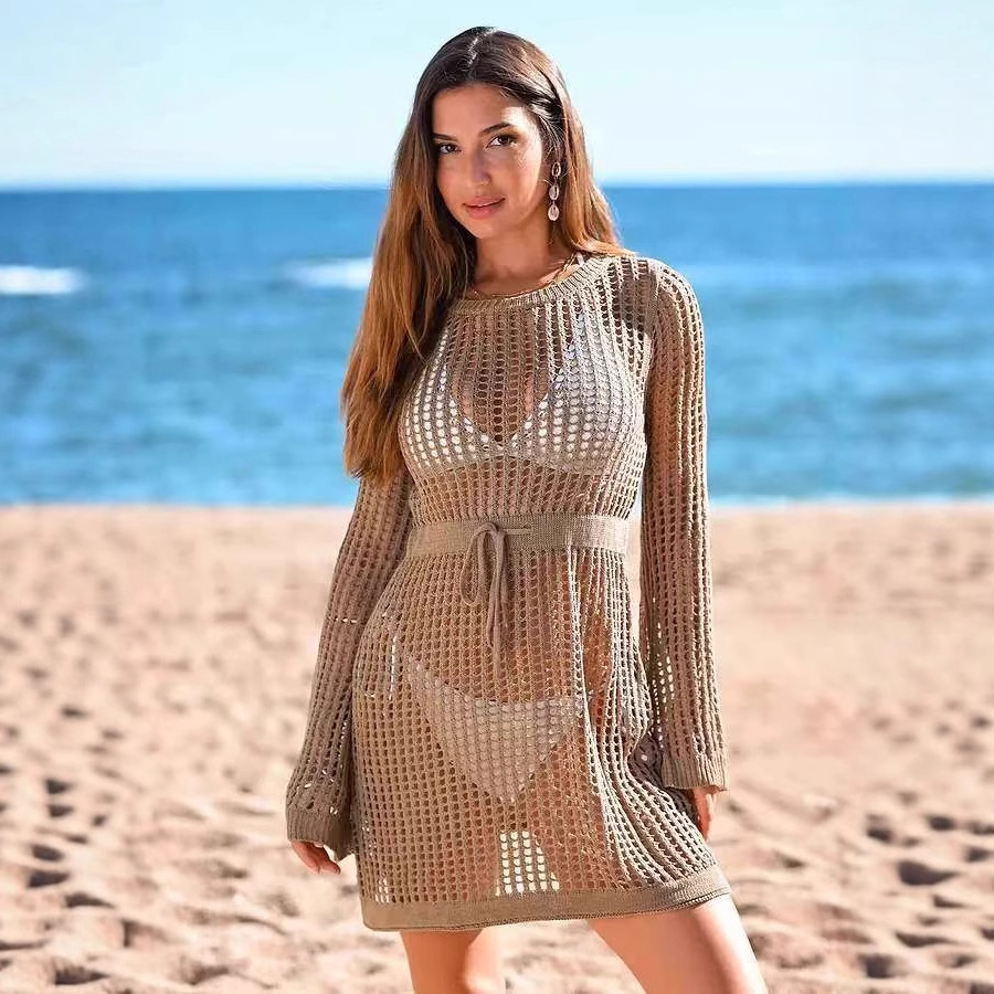 欧米風レディース新作ビキニニットカバーアップビーチドレス長袖ショートスカートトップスヒップカバースカート海外婦人服