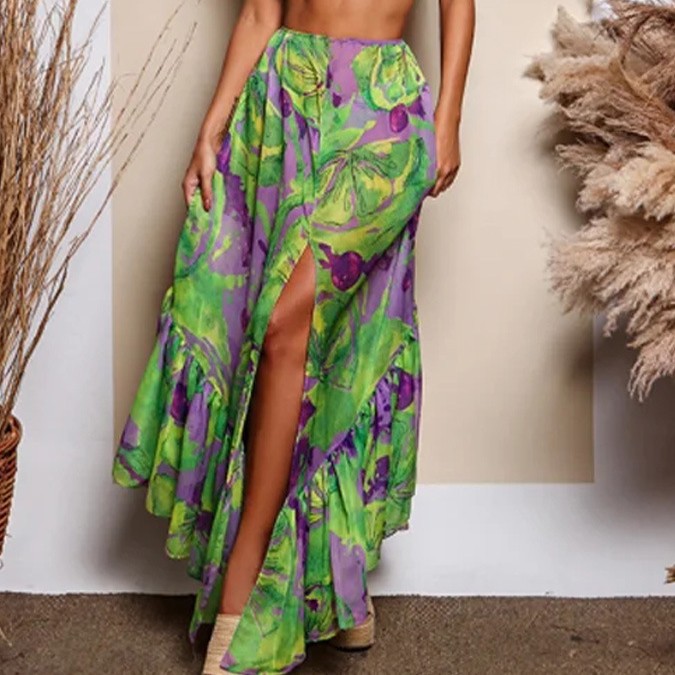 ヨーロッパとアメリカのクロスボーダーアマゾンの鮮やかなカラートロピカルスタイルスカートプールパーティーハーフスカートビーチスカート