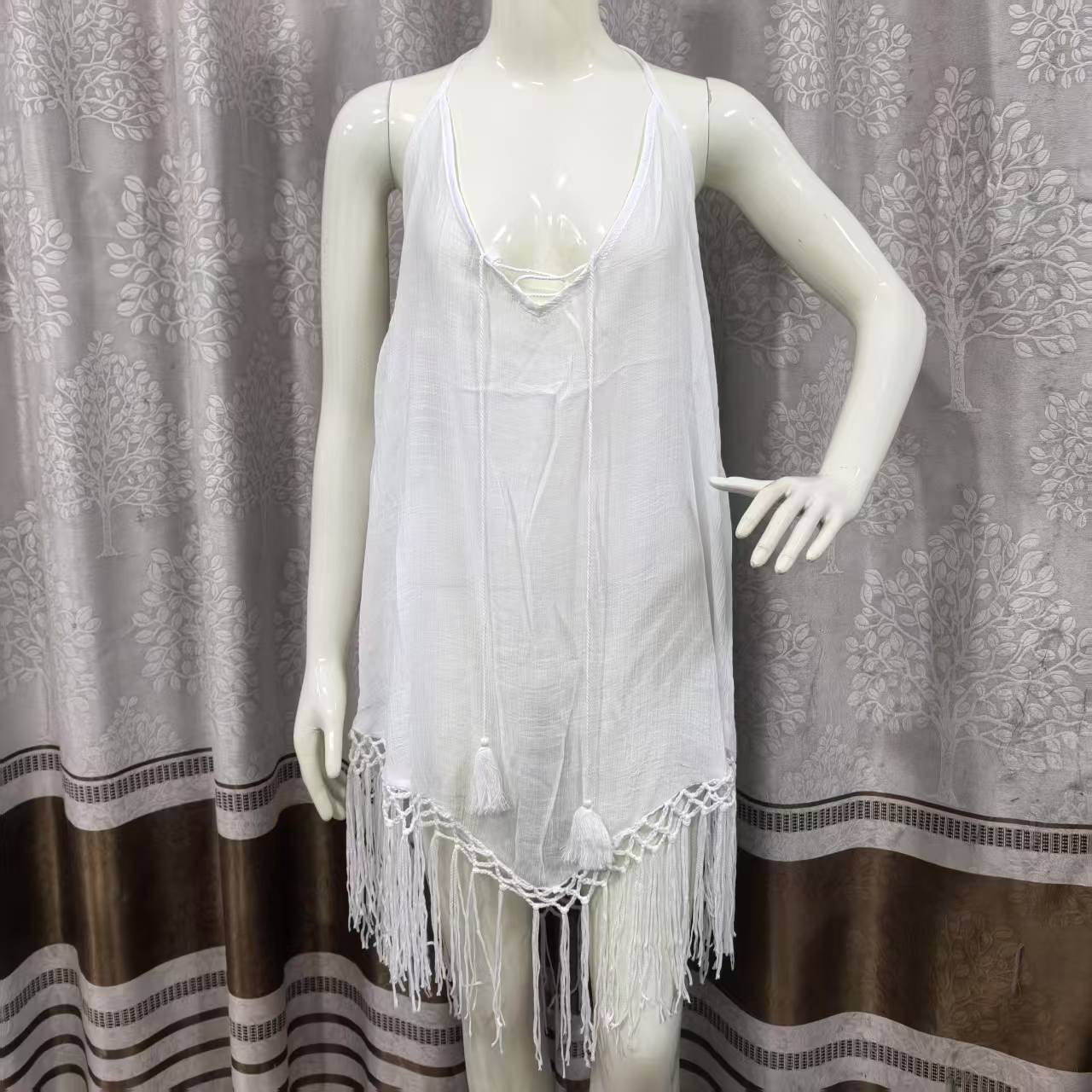 2025 春夏アマゾン新スタイルバックレスヨーロッパとアメリカのクロスボーダーニットルーズソリッドカラーファッションビキニビーチカバーアップ