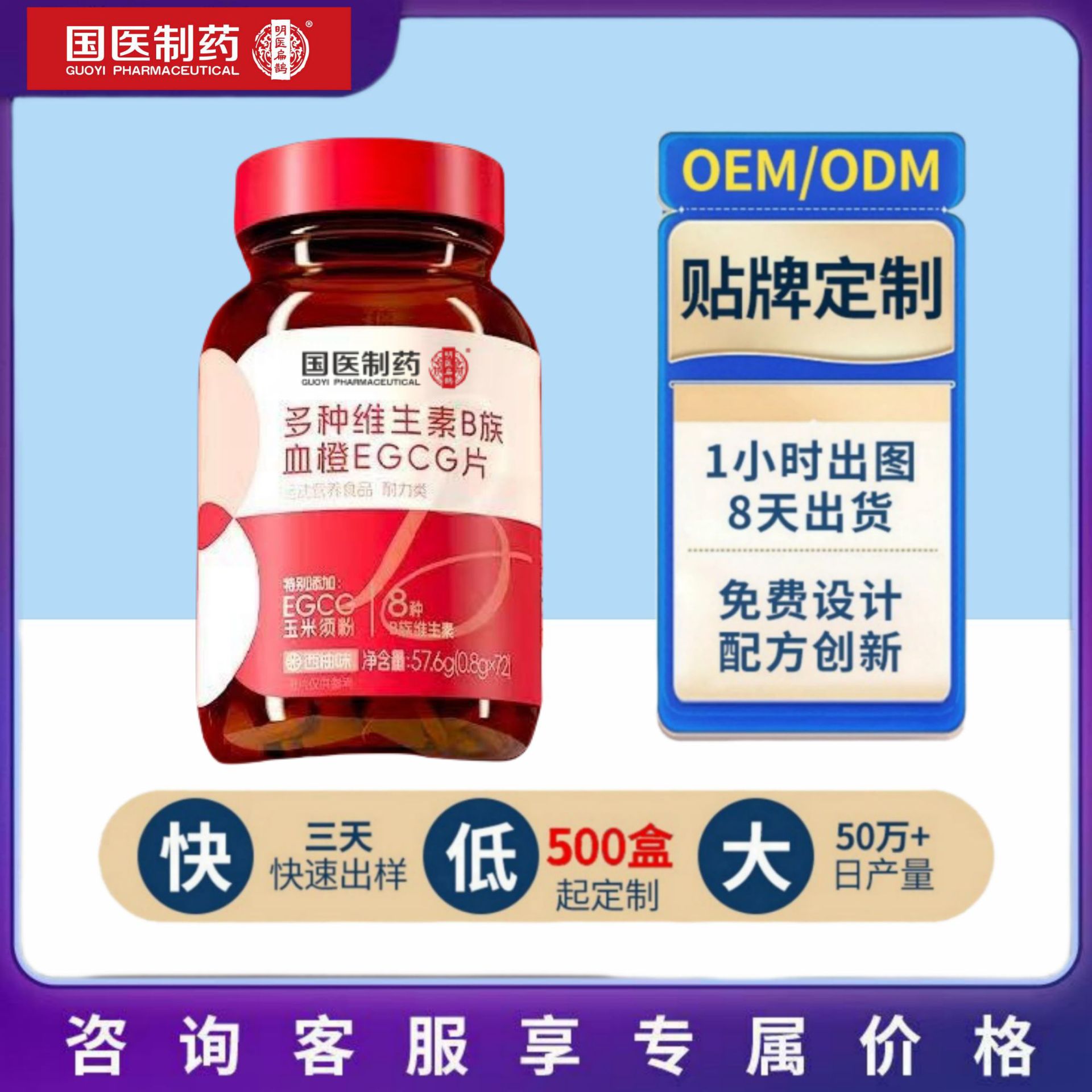 爆発!伝統的な中国医学製薬のホットセールマルチビタミンB複合体ブラッドオレンジEGCG錠0.8g*72錠卸売可能