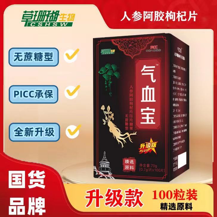 国産ブランドのアップグレード版、草珊瑚、高麗人参、ロバ皮ゼラチン、クコの実タブレット、100錠/箱、老舗ブランドロバ皮ゼラチン、新パッケージ