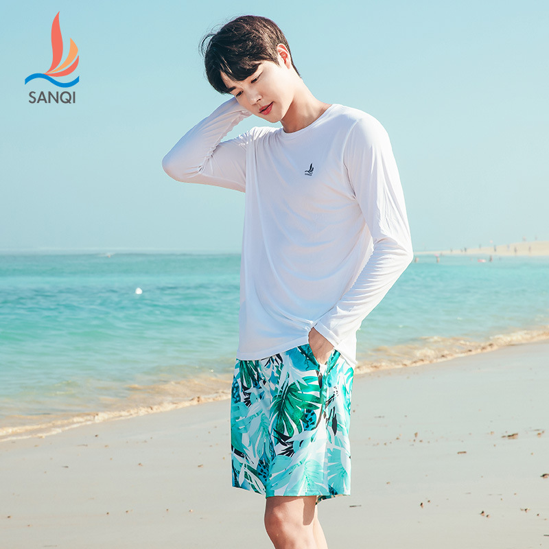 水着男性二重気まずい防止大サイズゆるい専門水泳パンツ日焼け止め温泉全身男性水着セット