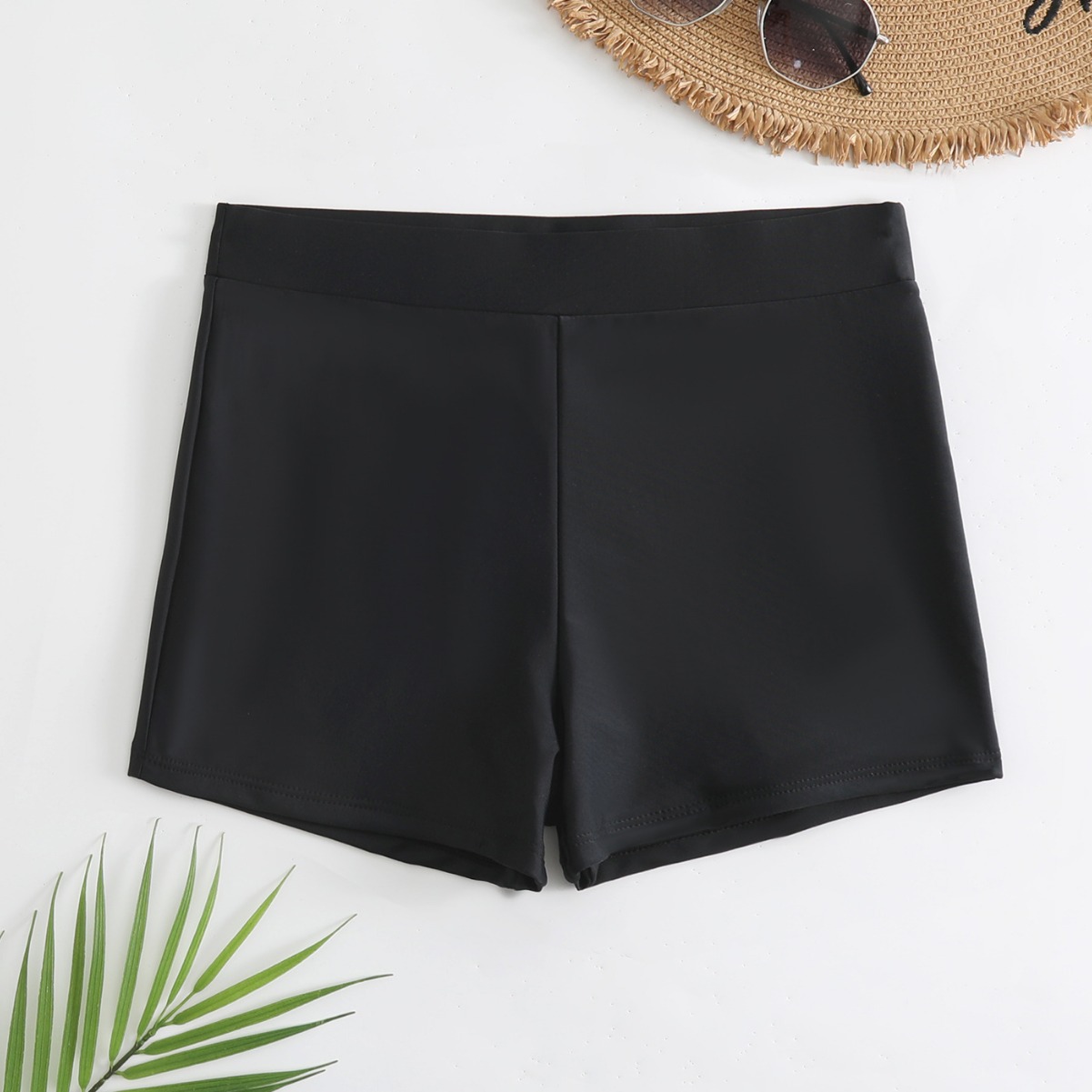 2023新型純黒色高腰平角水泳パンツ女性欧米対外貿易アマゾンショート水着