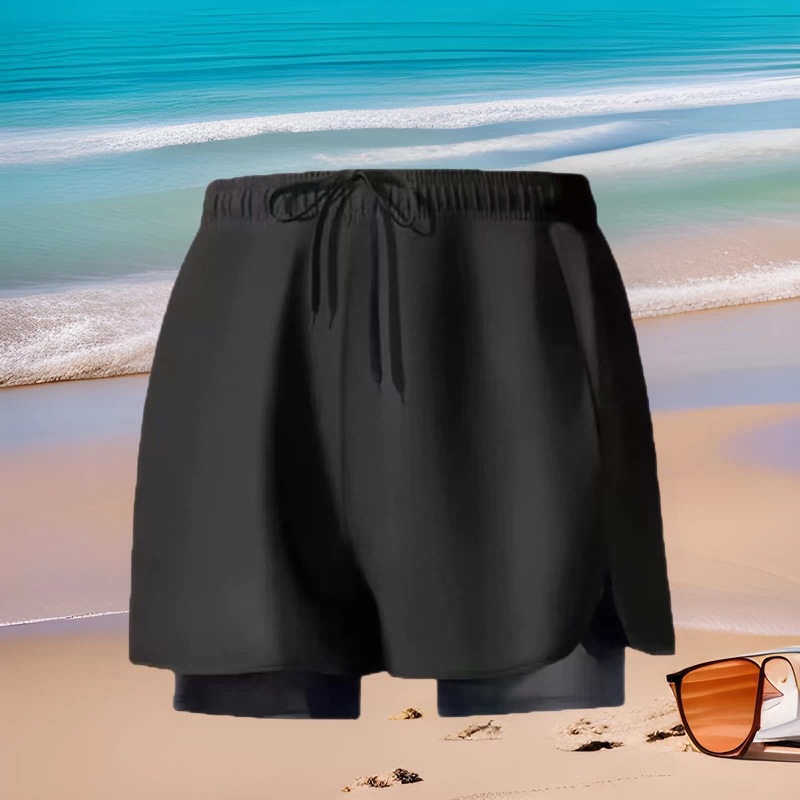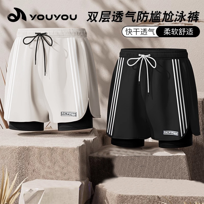 水泳パンツスポーツパンツ二重男子温泉運動フィットネス気まずい緩和ビーチパンツクロスボーダー平角水泳パンツ