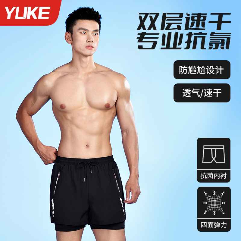 水泳パンツ男性二重気まずい水泳パンツ2025新専門速乾温泉ビーチパンツメーカー直販
