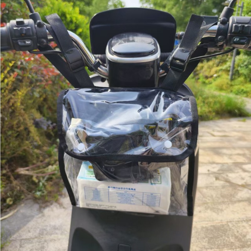 電動オートバイの前にマウンテンバイクを掛けて防水する前に、携帯電話の袋を収納して袋を卸売りします。