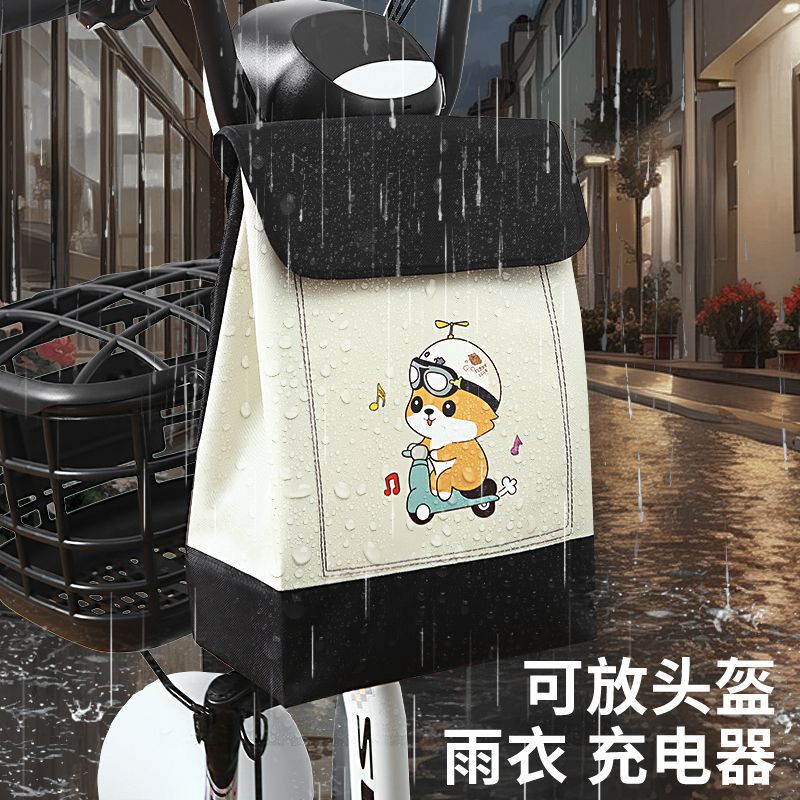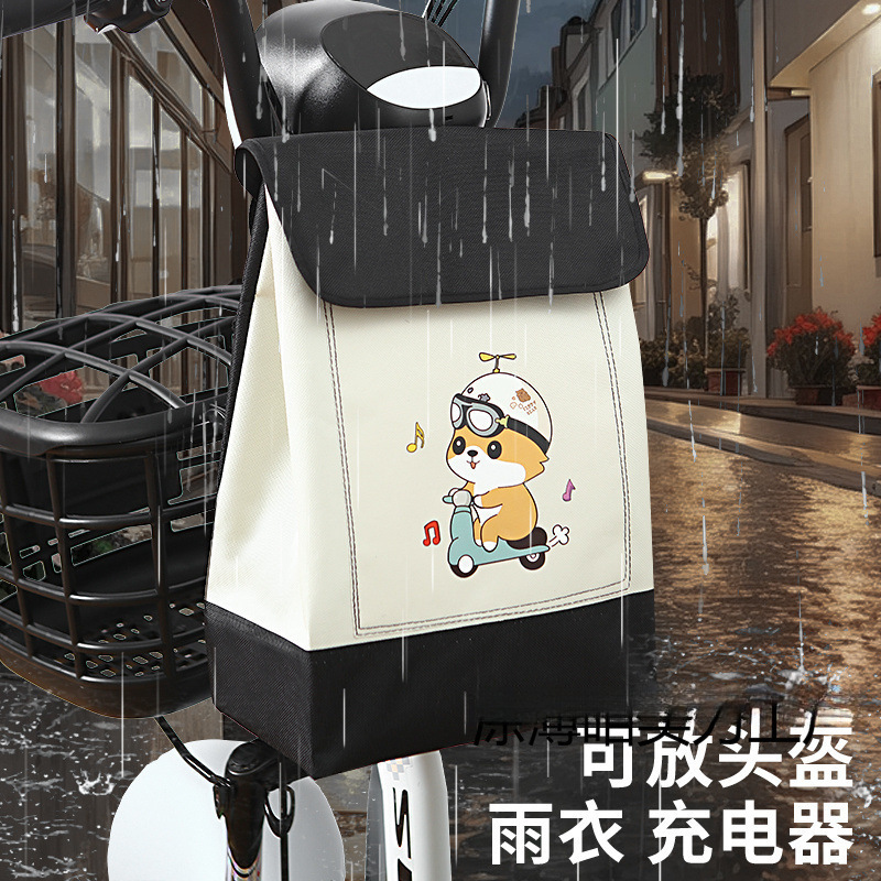 かわいい漫画の電気自動車フロントバッグ、大容量収納、電動自転車収納バッグ、充電器、防水収納