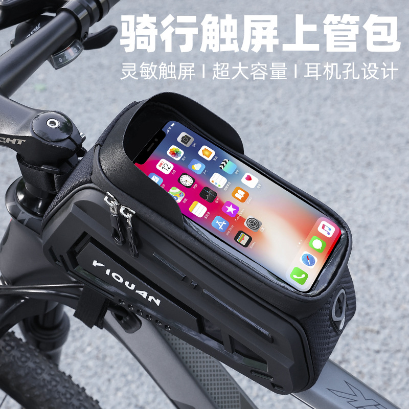 マウンテンバイク乗用上管横梁掛けバッグpu皮防水置物収納携帯電話タッチスクリーン自転車バッグ前梁バッグ