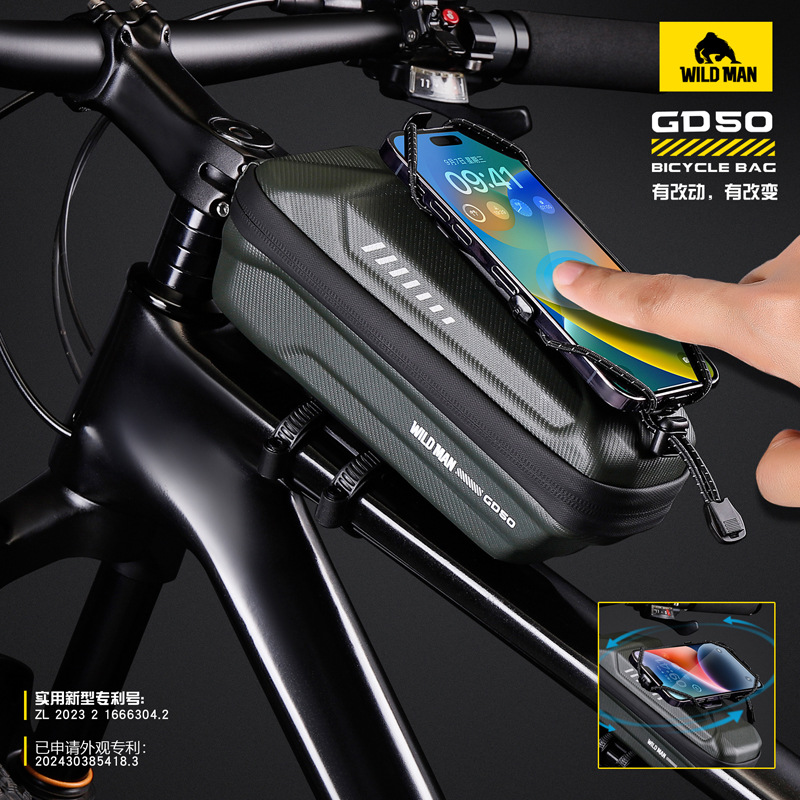 ワイルドマンマウンテンバイクEVAハードシェルクイック解体フロントビームバッグ携帯電話スタンド上パイプフロントバッグクロスボーダー