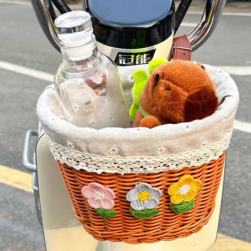 2024新型超かわいいキャンプ風自転車自転車に乗って水筒カップを掛けた前の車かご収納バッグ卸売り