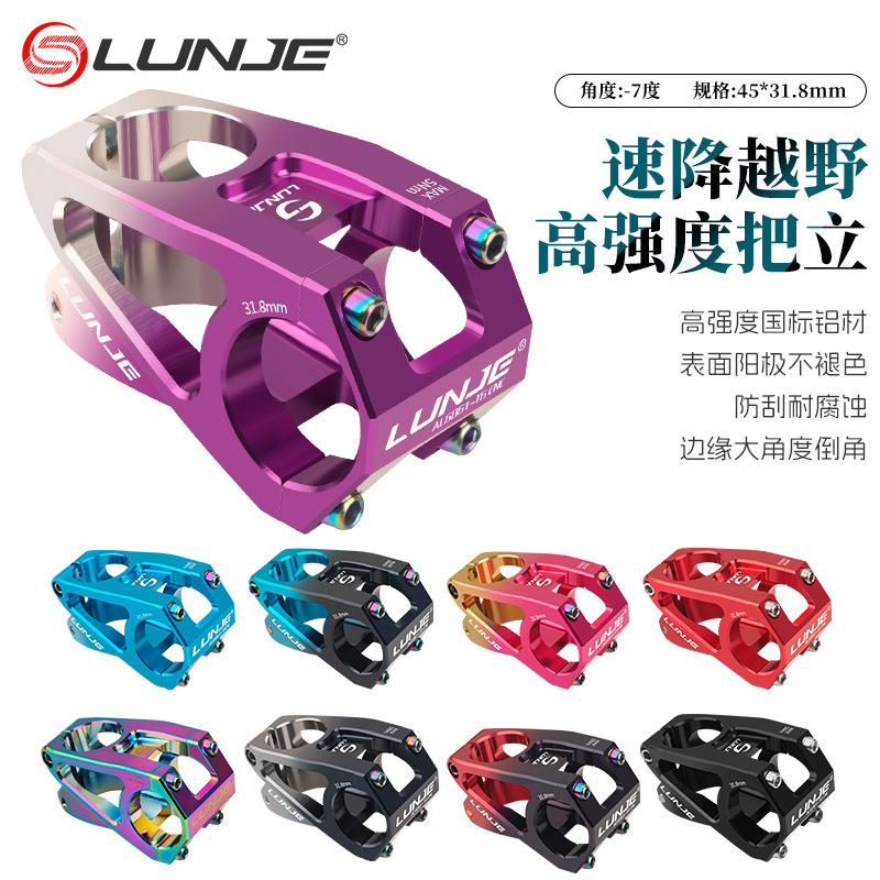 LUNJEマウンテンバイクハンドル高強度アルミ合金CNC超軽量透かし彫り45MM速降短立管部品