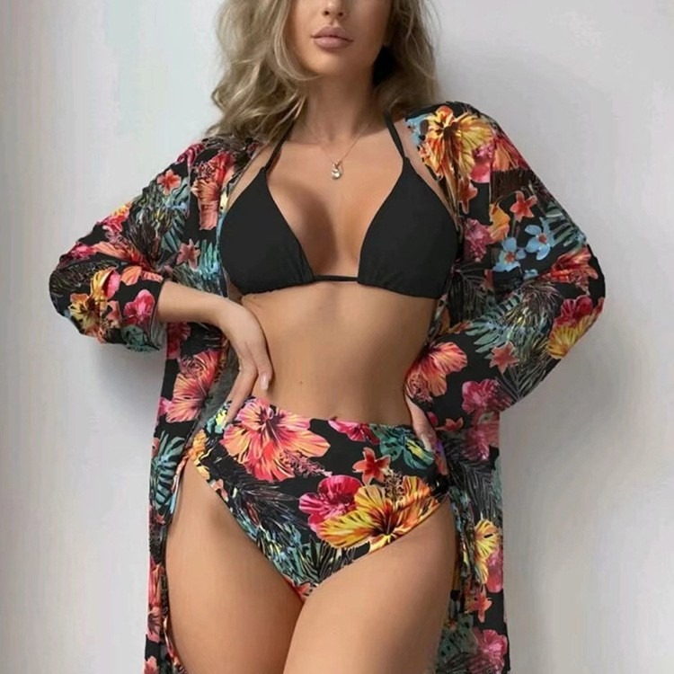 2025年新作 外貿 レースブラウス付きセパレート水着 欧米向けプリントビキニ水着 レディース3点セット