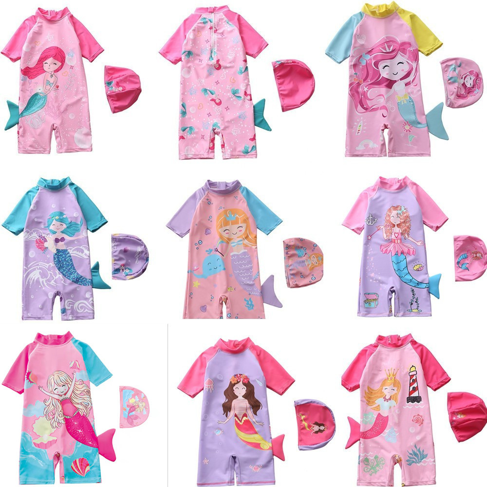長袖の日焼け止めの水着の女の子の2025女の子のかわいい新型の速乾の子供の連体の水泳の子供の王女の水着