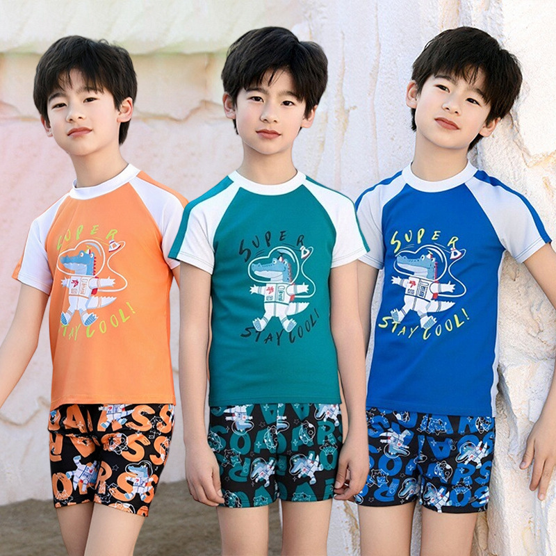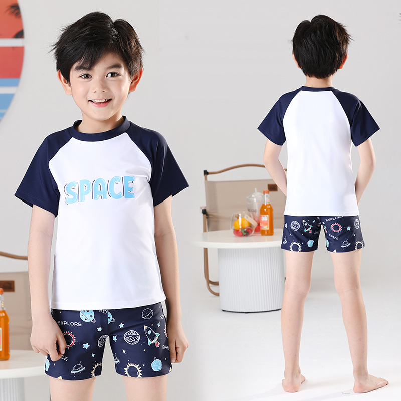 子供の水着の男の子の分体の男の子の2024新型の宇宙船の小さい中の大きい子供の日焼け止めの水泳の装備