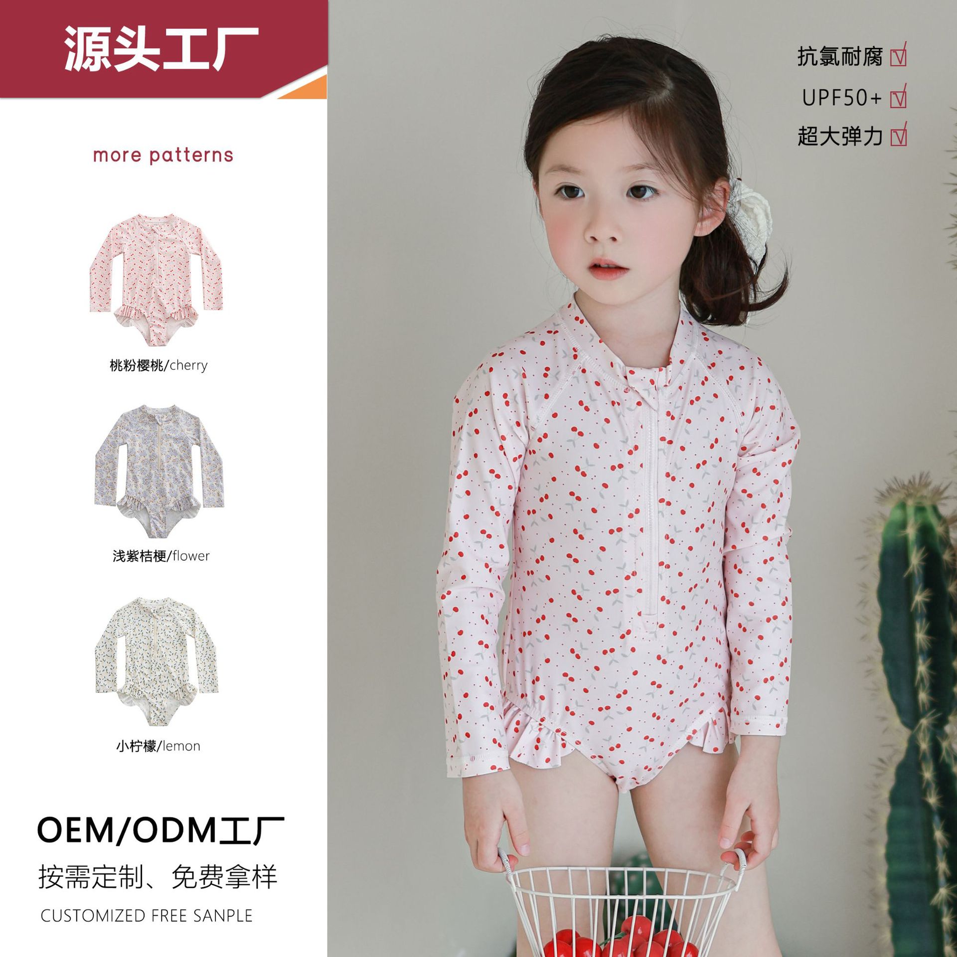 Momasong子供水着インスタ风女の子ミドル子供赤ちゃんワンピース长袖海辺日焼け止めサーフィン水着