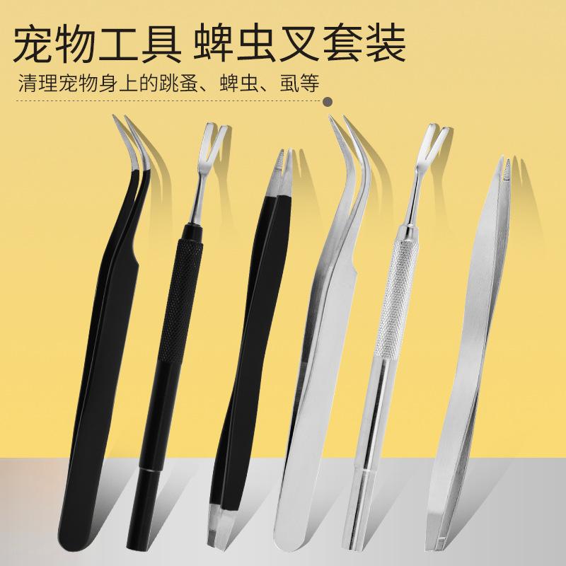ステンレス製ダニクリップ 3点セット 犬用シラミフォーク 猫用ノミ取りクリーニングクリップツール ペット用品 クロスボーダー