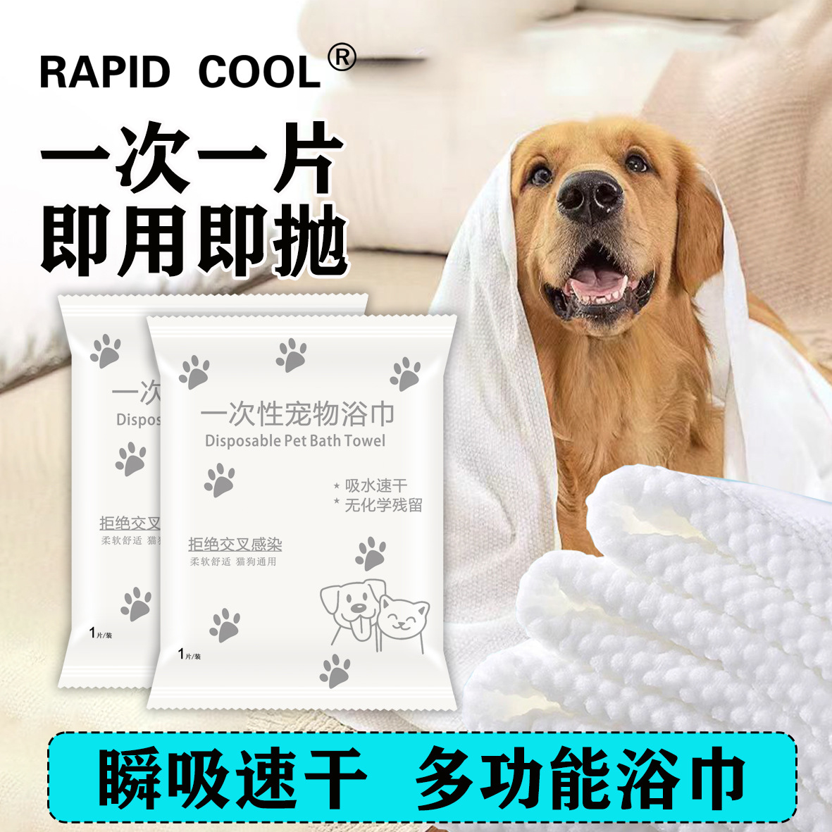 ペット専用使い捨てバスタオル、独立した純綿増粘犬用吸水タオル、大型クリーニングタオル