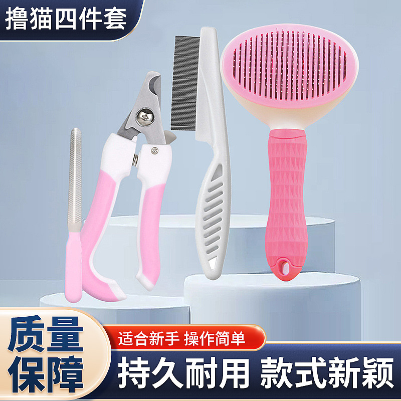 ペット櫛犬櫛自潔櫛猫櫛猫用浮毛自動脱毛櫛ハサミ4点セット